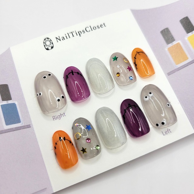 \新作ハロウィンネイル/ 心もワクワクしてしまうようなPOPなデザイン☆ おばけの目玉、口、星、マグネット…ネイリストのこだわりが詰まったネイルです。 指先から、思いっきりハロウィンを楽しみたい方にオススメです!
