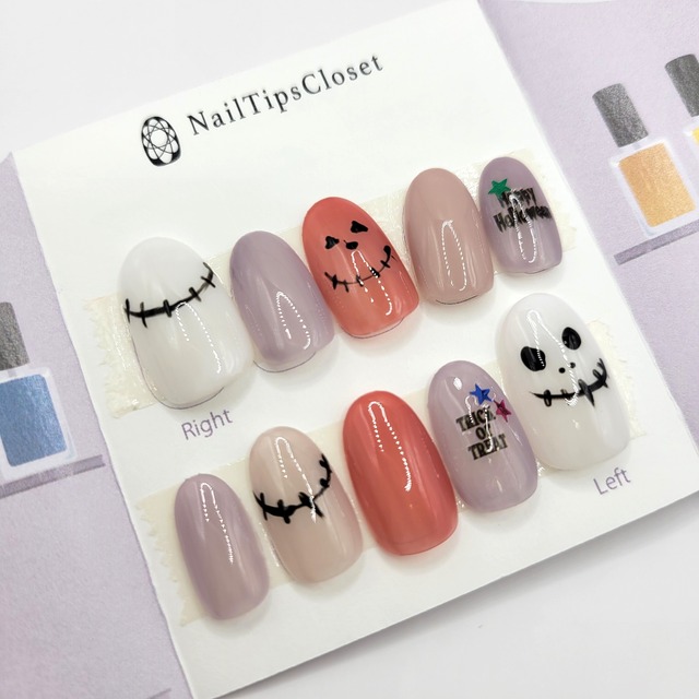 \新作ハロウィンネイル/ ピンク寄りのオレンジとパープルでキュートに仕上げました♡ 手書きの顔で抜け感を演出し、大人女子でも気兼ねなくハロウィンを楽しんでいただけるデザインです。