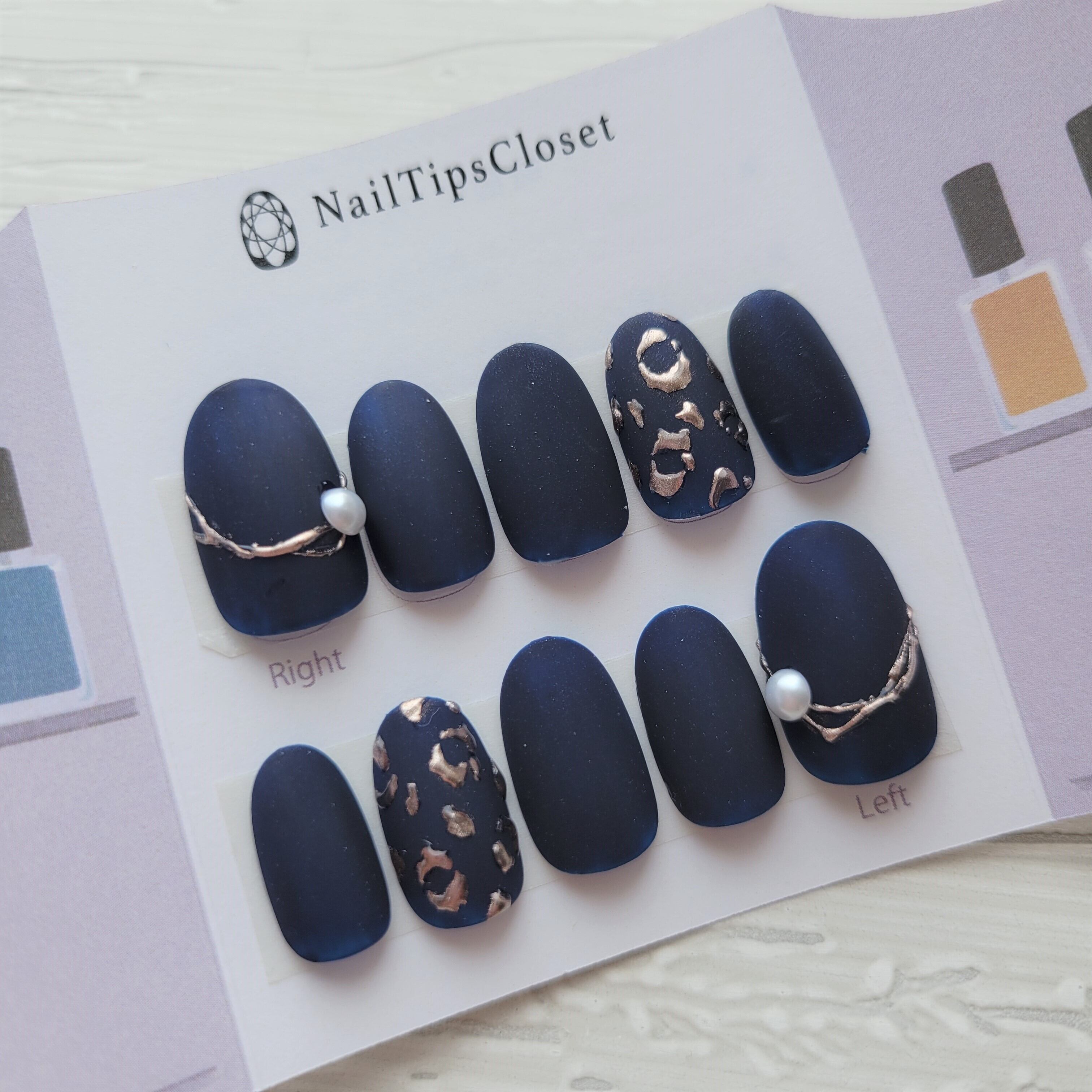 マットなネイビーとゴールドのレオパード柄がレディライクで女子ウケするデザインです。